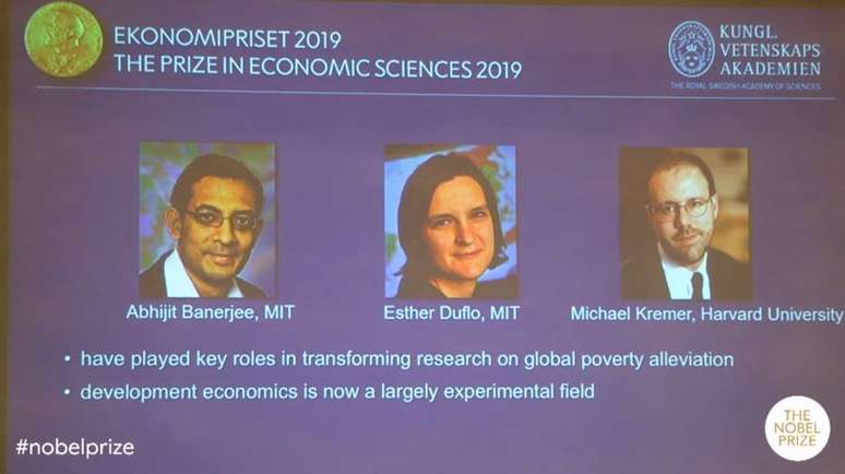 Abhijit Banerjee, Esther Duflo e Michael Kremer foram anunciados nesta segunda-feira, 14, como os vencedores do Prêmio Nobel de Economia de 2019. Eles foram premiados pela abordagem experimental em aliviar a pobreza no mundo. Esta foi a 51.ª premiação na categoria, que já laureou mais de 80 pessoas desde 1969.