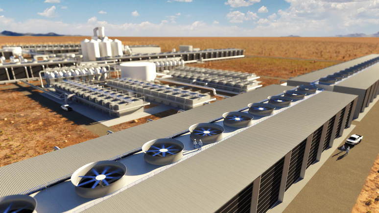 A captura direta de ar resulta, no entanto, em uma mercadoria valiosa: milhares de toneladas de CO2 comprimido.
