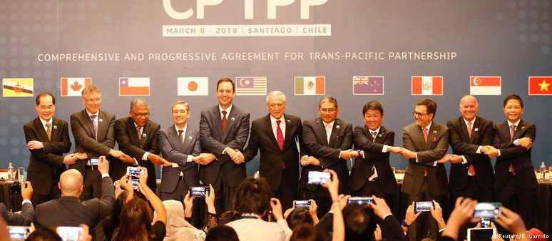 Ministros assinam nova versão do TPP, pacto de livre-comércio do qual Trump retirou os Estados Unidos após chegar à Casa Branca. Novo tratado é classificado de mensagem política contra o protecionismo.Ministros de 11 países assinaram nesta quinta-feira (08/03) uma nova versão da Parceria Transpacífico (TPP, na sigla em inglês), o acordo que criaria a maior área de livre-comércio do mundo, mas que foi rejeitado pelo presidente dos Estados Unidos, Donald Trump.