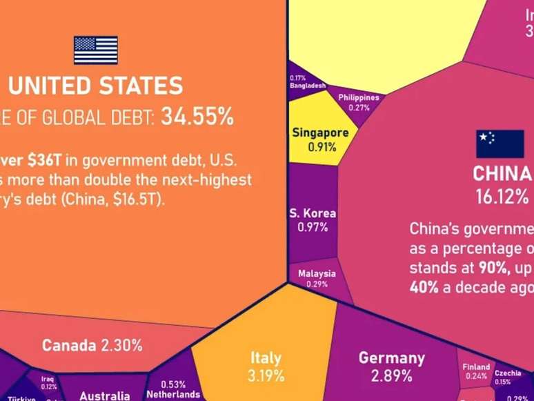 Os trilhões que cada país do mundo deve em 2024, mostrados neste gráfico