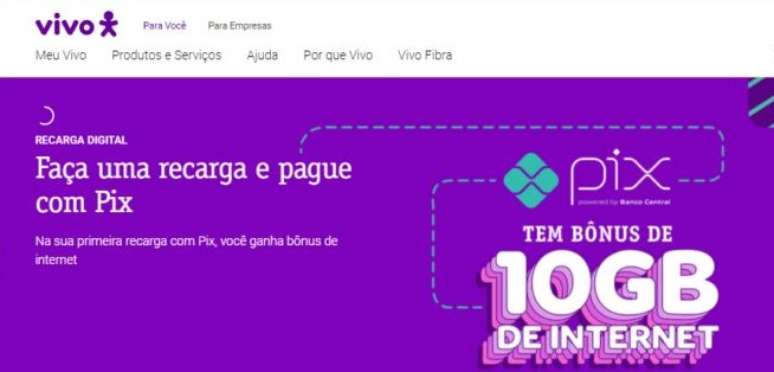 A partir de hoje, a nova opção de pagamento está disponível nos canais digitais e, para incentivar os clientes a experimentar o PIX, a Vivo oferecerá um bônus de 10GB para a primeira recarga feita com o PIX no app Meu Vivo e site www.vivo.com.br/recarga. O bônus terá validade de sete dias. A Vivo segue em processo de adequação para incluir o PIX como meio de pagamento em outros canais e serviços.