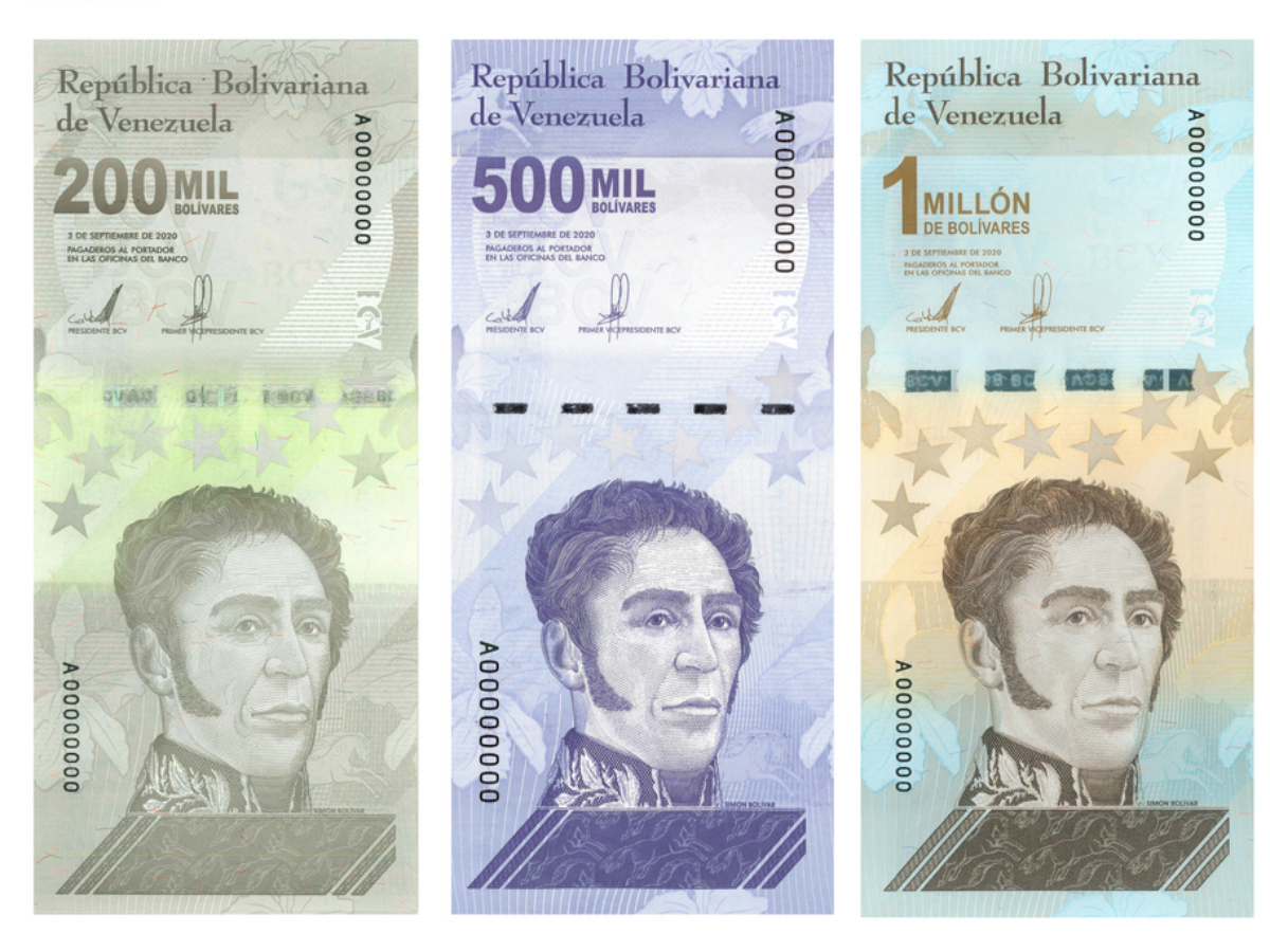 Além da cédula de 1 milhão de bolívares, a conta do Twitter do Banco Central da Venezuela anunciou o lançamento de outras duas novas notas, de 200 mil e 500 mil, "para atender às necessidades da economia nacional".