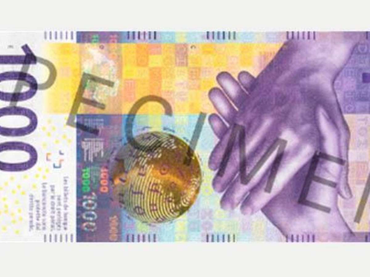 A nova nota roxa de mil francos suíços, um pouco menor e com a imagem de um aperto de mãos e um globo terrestre, é a mais recente de uma série de reformulações feitas pelo Banco Central da Suíça (SNB, na sigla em inglês).