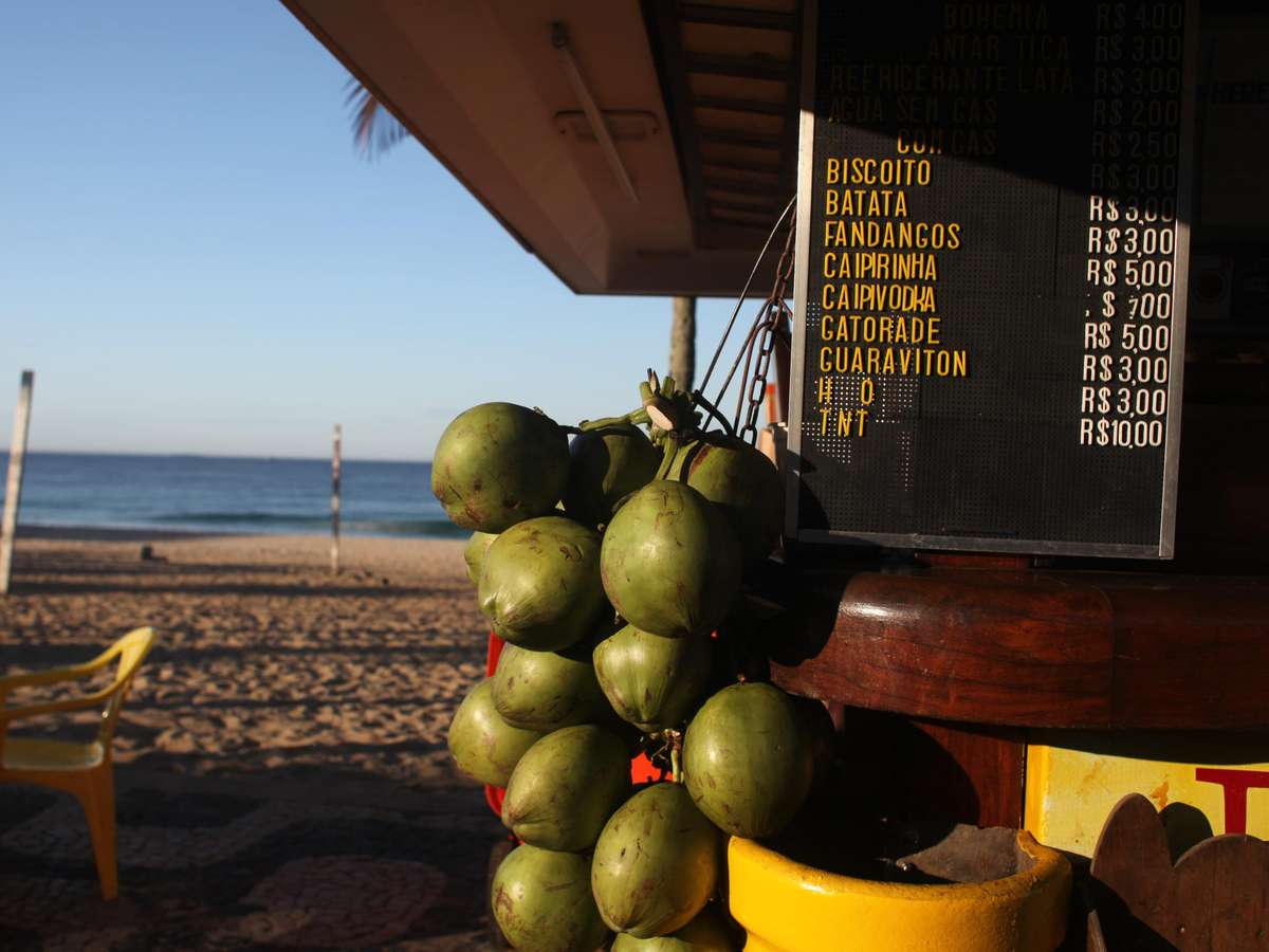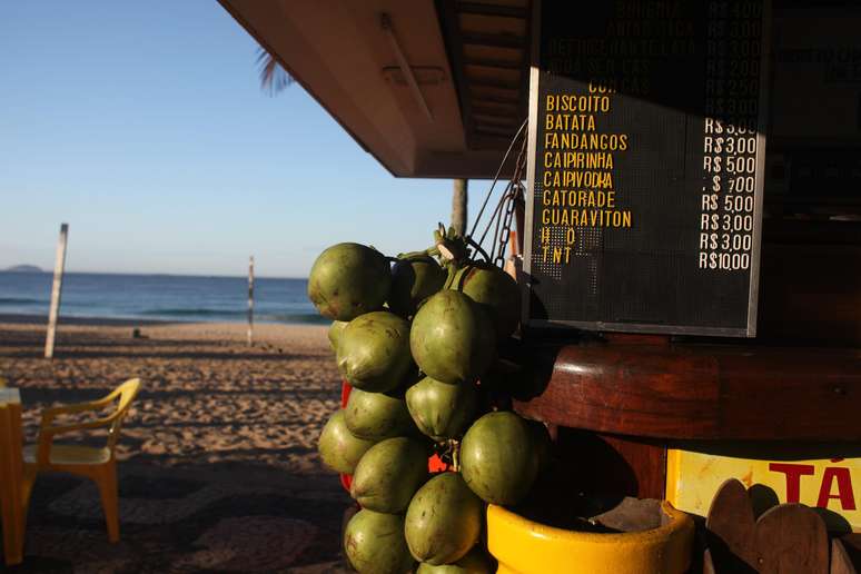 O levantamento foi feito entre 25 e 29 de abril e analisou 62 produtos -- incluindo água mineral, refrigerantes, cervejas, energéticos e petiscos. Foram 21 quiosques e 11 restaurantes analisados entre os postos 1 e 3 da orla de Copacabana.