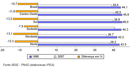 Como a região Sul era a que tinha a maior carga de trabalho em 1988, os pesquisadores do Ipea acreditam que a maior redução naquela região se deva à melhoria das relações de trabalho entre patrões e empregados.