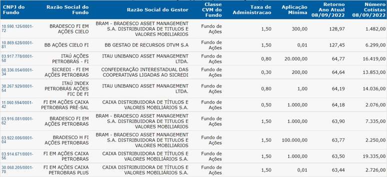 Um levantamento feito pela Filipe Ferreira, da Comdinheiro, mostrou os dez maiores fundos de investimentos em ações que se destacaram neste ano. Confira: