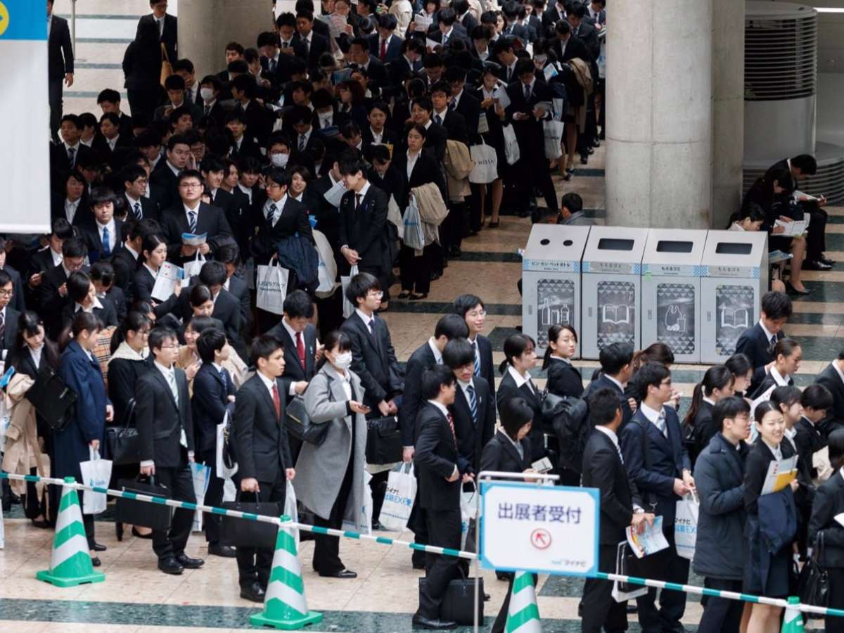 Todos os anos, no início de abril, milhares de futuros formandos no Japão percorrem a cidade de roupa social preta, carregando uma maleta contendo apenas seus currículos, na esperança de conseguir um emprego nas empresas mais conceituadas do país.