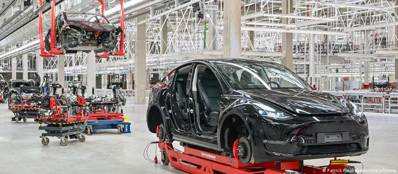Localizado nos arredores da capital alemã, complexo empregará cerca de 12 mil funcionários, visando produção de 500 mil automóveis elétricos por ano, assim como baterias para veículos.Cerca de dois anos após o início dos trabalhos de construção, a primeira fábrica europeia da Tesla em Grünheide, nos arredores de Berlim, tem inauguração marcada para esta terça-feira (22/03), com a presença do chanceler federal alemão, Olaf Scholz, e do ministro alemão da Economia e vice-chanceler, Robert Habeck.
