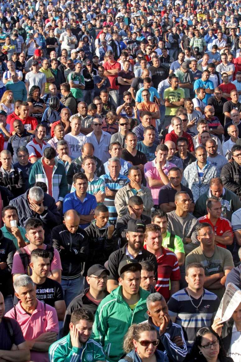 Trabalhadores da Mercedes-Benz de São Bernardo do Campo, em São Paulo, fizeram hoje (16) em frente o Sindicato dos Metalúrgicos do ABC, uma assembleia para debater sobre o anúncio da suspensão da produção da fábrica de caminhões e ônibus, feito na semana passada pela empresa.