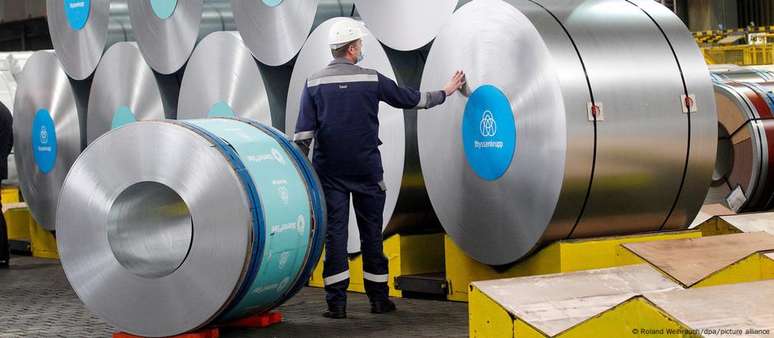 Bloco diz que reação será "forte e proporcional" após entrada em vigor das tarifas de 25% sobre importações de aço e alumínio impostas pelos EUA. Brasil opta por não retaliar.Tarifas de 25% sobre todas as importações de aço e alumínio para os Estados Unidos entraram em vigor nesta quarta-feira (12/03), provocando medidas de retaliação da União Europeia e a ira da China, que promete fazer o que for "necessário" para defender seus interesses.