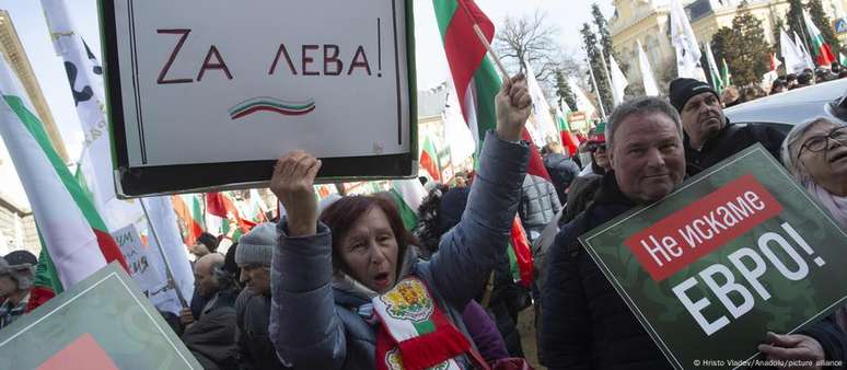 "Se a Bulgária entrar na zona do euro, será como embarcar no Titanic", disse Nikolai Ivanov, ex-funcionário sênior do governo, à agência de notícias AFP durante outro protesto recente que pedia a manutenção da moeda nacional.