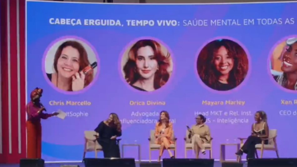 Especialistas debatem a importância da saúde mental na jornada empreendedora. Mayara Marley, Chris Marcello, Drica Divina e Xan Ravelli compartilham práticas de bem-estar em todas as fases da vida.
