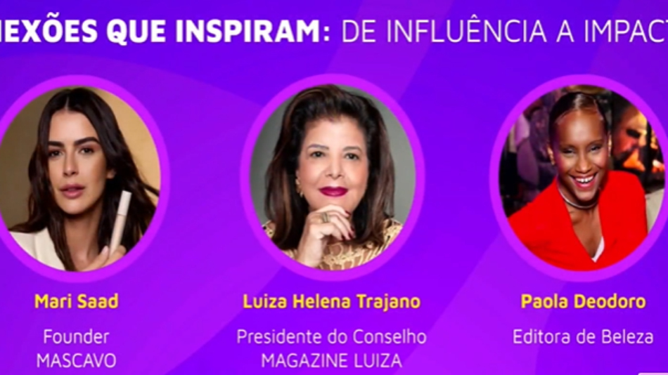 Mulheres referência compartilham como transformaram influência em impacto. Luiza Helena Trajano, Mari Saad e Paola Deodoro discutem propósito, liderança e poder de conexão para gerar mudanças reais.