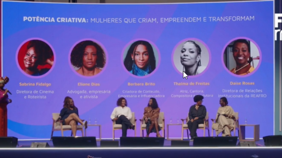 Mulheres criativas discutem arte, cultura e empreendedorismo como ferramentas de transformação social. Eliane Dias, Sabrina Fidalgo, Thalma de Freitas, Barbara Brito e Daise Rosas da Natividade inspiram inovação e impacto