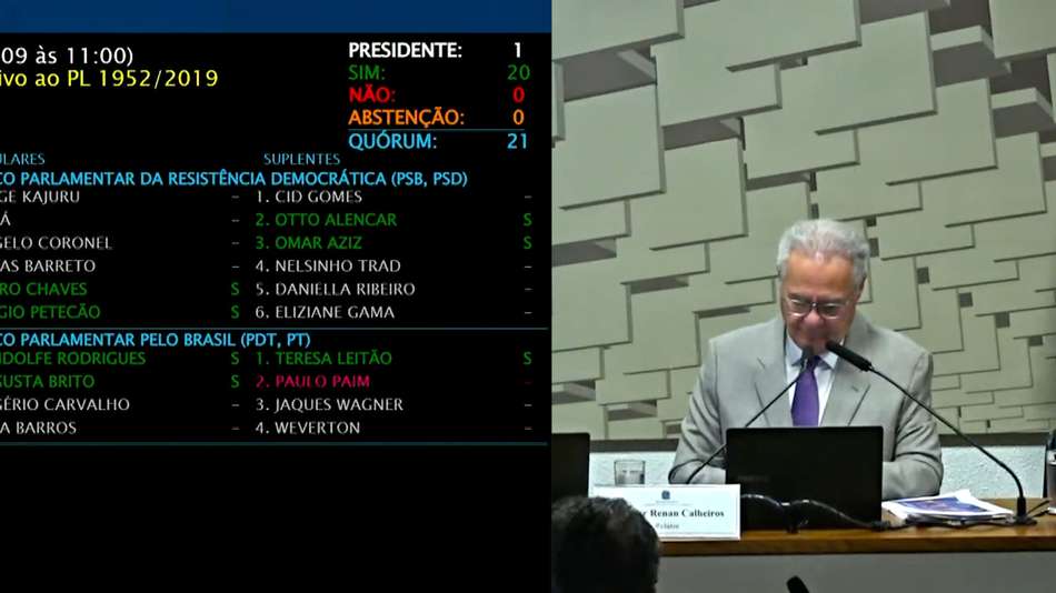 A Comissão de Assuntos Econômicos aprovou nesta quarta-feira, 24, por unanimidade, o projeto relatado por Renan Calheiros. A proposta isenta do Imposto de Renda quem recebe até R$ 5 mil e segue para a Câmara dos Deputados. O texto ainda prevê descontos escalonados para quem ganha entre R$ 5 mil e R$ 7.350 e um programa de refinanciamento de dívidas para famílias de baixa renda. Também inclui compensações a Estados e municípios que tiverem perda de arrecadação. Reprodução/TV Justiça/Youtube