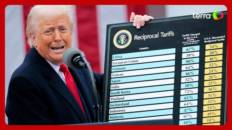 O presidente dos Estados Unidos, Donald Trump, comentou a turbulência dos mercados na manhã desta segunda-feira, 7, em publicação na Truth Social. O republicano apontou a queda nos preços do petróleo e dos rendimentos americanos, reiterando pedido para que o Federal Reserve (Fed, o Banco Central do país) corte as taxas de juros. "Os preços do petróleo estão baixos, as taxas de juros estão baixas (o lento Fed deveria cortar as taxas!), os preços dos alimentos estão baixos, NÃO HÁ INFLAÇÃO", escreveu. Trump defendeu que as tarifas estão "trazendo bilhões de dólares" para os EUA, apesar da retaliação chinesa, citando que os mercados da China estão "em colapso". "A China não considerou meu aviso para que os países abusadores não retaliassem. Eles ganharam o suficiente, por décadas, tirando vantagem dos bons e velhos EUA!”. Imagens: GettyImages e Reprodução/TruthSocial