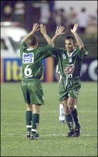 sorte, fazendo 1 a 0 aos 14 minutos. Evair cobrou com muita categoria uma