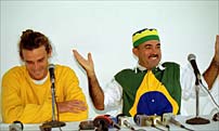 Durante esses dias difíceis na vida de Gustavo Kuerten, ele teve ao seu lado as presenças constantes do técnico Larri Passos e da família, todos presentes na coletiva desta quinta-feira. Bem-humorado, Larri chegou vestido de 7 de Setembro: nos tecidos da camisa e do gorro, estampas alusivas à bandeira do Brasil.