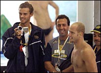 O tenista aproveitou a folga forçada para mudar o visual e encontrar o conterrâneo Fernando Scherer. Na água, Xuxa é outra esperança de ouro catarinense. Guga chegou de surpresa no local de treino da natação com o cabelo num coque.