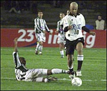 depois de receber bola de Ricardinho na grande área. Os jogadores do