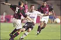 O Corinthians não demorou para responder. Aos 11 minutos, Müller dominou na entrada da área e tocou para Marcelinho, na esquerda do ataque. O meia chutou cruzado, de pé esquerdo e diminuiu para o Timão.