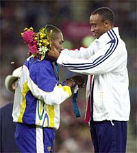 São Paulo - O velocista brasileiro Claudinei Quirino sentiu o gosto de ter uma medalha de ouro no peito, pelo menos por alguns segundos. O atleta que, junto com Edson Luciano Ribeiro, Vicente Lenilson e a André Domingos, conquistou a medalha de prata no revezamento 4 x 100 metros masculino colocou uma medalha de ouro enquanto estava no pódio, mas ficou no segundo degrau.