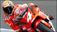 Barros, que deu 22 voltas, fez seu melhor tempo em 1min50s51. O pole position é o italiano Max Biaggi (foto) com a marca de 1min49s95.
