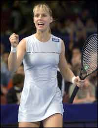 Nova York - A russa Elena Dementieva eliminou a americana e atual campeã, Lindsay Davenport, do Masters de Nova York, na noite desta quarta-feira.