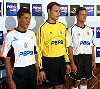 São Paulo - O Corinthians apresentou nesta segunda-feira seus novos uniformes para a temporada 2001. A Topper, marca esportiva do clube paulista, apresenta um novo uniforme para o Timão em 2001 que tem como objetivo dar maior conforto e melhorar a performance física dos jogadores.