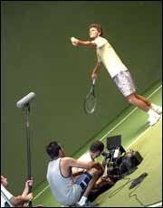 Depois disto, o tenista foi para a academia de seu irmão Rafael, P&K, fazer cenas de jogo, como saque e voleio em meio a muitas câmeras, luzes e uma equipe de 42 pessoas.