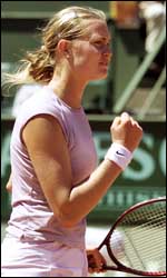 A espanhola Angeles Montolio derrotou neste sábado a belga Justine Henin, 20ª do mundo, por 2 sets a 1 (5/7, 7/6 (7/4), 6/4), garantindo vaga na final do