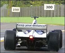 A escuderia inglesa colocou escreveu atrás de seu carro os dizeres: ‘mantenha distância’. Foi uma crítica bem humorada da Williams se referindo aos quatro acidentes que aconteceram este ano entre Ralf e Villeneuve (Austrália), Ralf e Rubinho (Malásia e Brasil) e Montoya e Verstappen (Brasil).