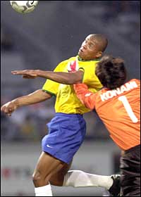 No primeiro tempo, o Brasil sentiu a falta de entrosamento. Mas nem o fato de ter pela frente um fraco adversário conseguiu fazer o time jogar bem. E, para piorar, o atacante Sonny Anderson ficou sumido.