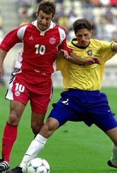 Após seis minutos, Robert chutou junto à trave direita. Na melhor chance do Brasil, Fábio Rochemback chutou de fora da área aos 33 minutos e acertou a trave esquerda. Muito pouco para uma seleção que tem como proposta apresentar um "futebol bailarino", como define o seu técnico Émerson Leão.