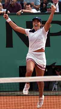 As tenistas mantiveram a vantagem até o empate de 6/6 e a partida foi decidida num set longo, com as jogadoras tendo de abrir dois games de vantagem, sem tie-break. Capriati voltou a ter uma quebra no 13º game, mas levou o troco logo em seguida, quando poderia ter fechado a partida. Nova quebra veio no 19º game, mais uma vez devolvida prontamente. Capriati voltou a ter uma quebra no 21º game, desta vez não desperdiçada. É o segundo título de Grand Slam de Capriati neste ano, já que ela venceu também o Aberto da Austrália.