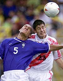 21 minutos – Juninho Paulista avança pela esquerda e é derrubado por Salazar. Jogador peruano é expulso.