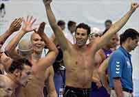 O ‘Thorpedo’ foi o último a cair na água e principal responsável não apenas pela vitória como também pela quebra do recorde mundial da prova. Os australianos cravaram 7min04s66 contra 7min07s05, tempo que pertencia também ao time da Austrália estabelecido nos Jogos Olímpicos de Sydney.