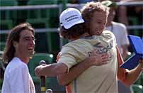São Paulo – Titular nas duplas da equipe brasileira na Davis, Jaime Oncins recebeu neste sábado uma homenagem de seus colegas de equipe Gustavo Kuerten e Fernando Meligeni. Aos 31 anos, o tenista ganhou uma placa comemorativa na competição em que fez sua despedida oficial das quadras. Oncins foi eliminado tanto em simples quanto em duplas no Aberto do Brasil, disputado na Costa do Sauípe.