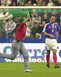 O clima tenso da véspera esteve presente desde o primeiro minuto de jogo, quando um torcedor empunhando uma bandeira argelina entrou em campo.