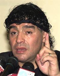 Maradona, de 40 anos, abandonou o futebol em 1997, após jogar com a camisa argentina em todas as categorias, num total de 138 partidas entre 1977 e 1994, com 61 gols marcados.