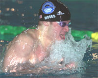 Moses, que havia quebrado um dos recordes há apenas cinco dias, estabeleceu novas marcas nos 50 e 200 metros nado peito. "Estou surpreso com minha velocidade. Este é provavelmente meu melhor dia na natação", afirmou Moses, medalhista olímpico de prata nos 100 metros peito.