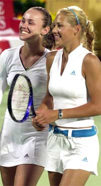 São Paulo – As adversárias que se preparem, porque as belas Martina Hingis e Anna Kournikova já avisaram que o casamento entre elas nas quadras vai durar até o final do ano. A dupla é conhecida como ‘Spice Girls’.