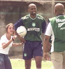 São Paulo – No rachão em dois toques comando pelo técnico Wanderley Luxemburgo este sábado, uma torcedora conseguiu driblar a segurança palmeirense e, no meio do treinamento, invadiu o gramado onde os jogadores estavam.