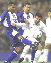 Aos 12min, Figo lançou Zidane pela esquerda, mas a bola saiu muito longa e