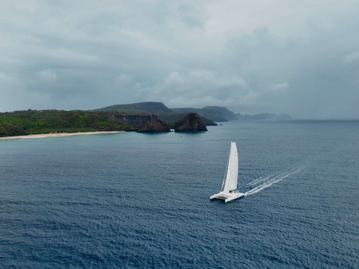 A embarcação pernambucana cruzou o Mirante do Boldró, em Noronha, às 7h47 (horário do Recife), completando a travessia em 17h47min46s, o quarto melhor tempo da história da competição.