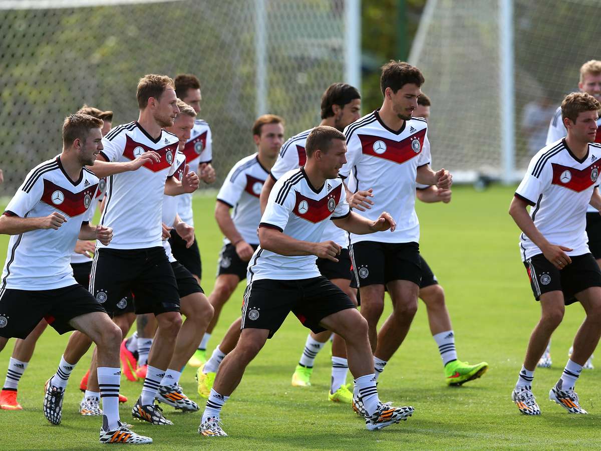 A dois dias da estreia na Copa do Mundo, contra Portugal, no dia 16 de junho, a Alemanha realiza treino no Campo Bahia. Durante a atividade, o técnico da seleção, Joachim Loew, disputou uma partida com os jogadores