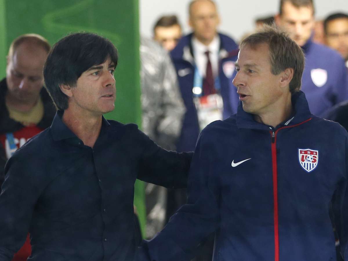 Amigos de longa data, Joachim Low e Jurgen Klinsmann foram adversários nesta quinta-feira. O vitorioso foi Low, já que a Alemanha derrotou os Estados Unidos por 1 a 0 na Arena Pernambuco, mas ambos saíram satisfeitos. Isto porque as duas seleções terminaram o Grupo G nas primeiras posições e garantiram vaga nas oitavas de final da Copa do Mundo.