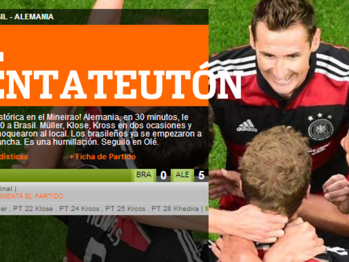 Ainda na etapa inicial, com 28 minutos e 5 a 0 no placar, o jornal Olé, conhecido por suas provocações ao Brasil, chegou a usar as expressões "Demüllerdor" e "Pentateutón".