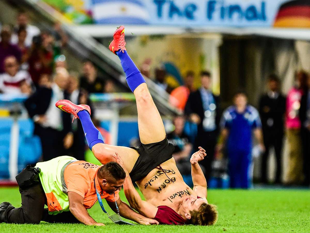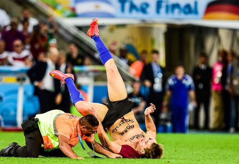 Torcedor invade o gramado durante partida final da Copa, entre Alemanha e Argentina, no Estádio do Maracanã. Rio de Janeiro