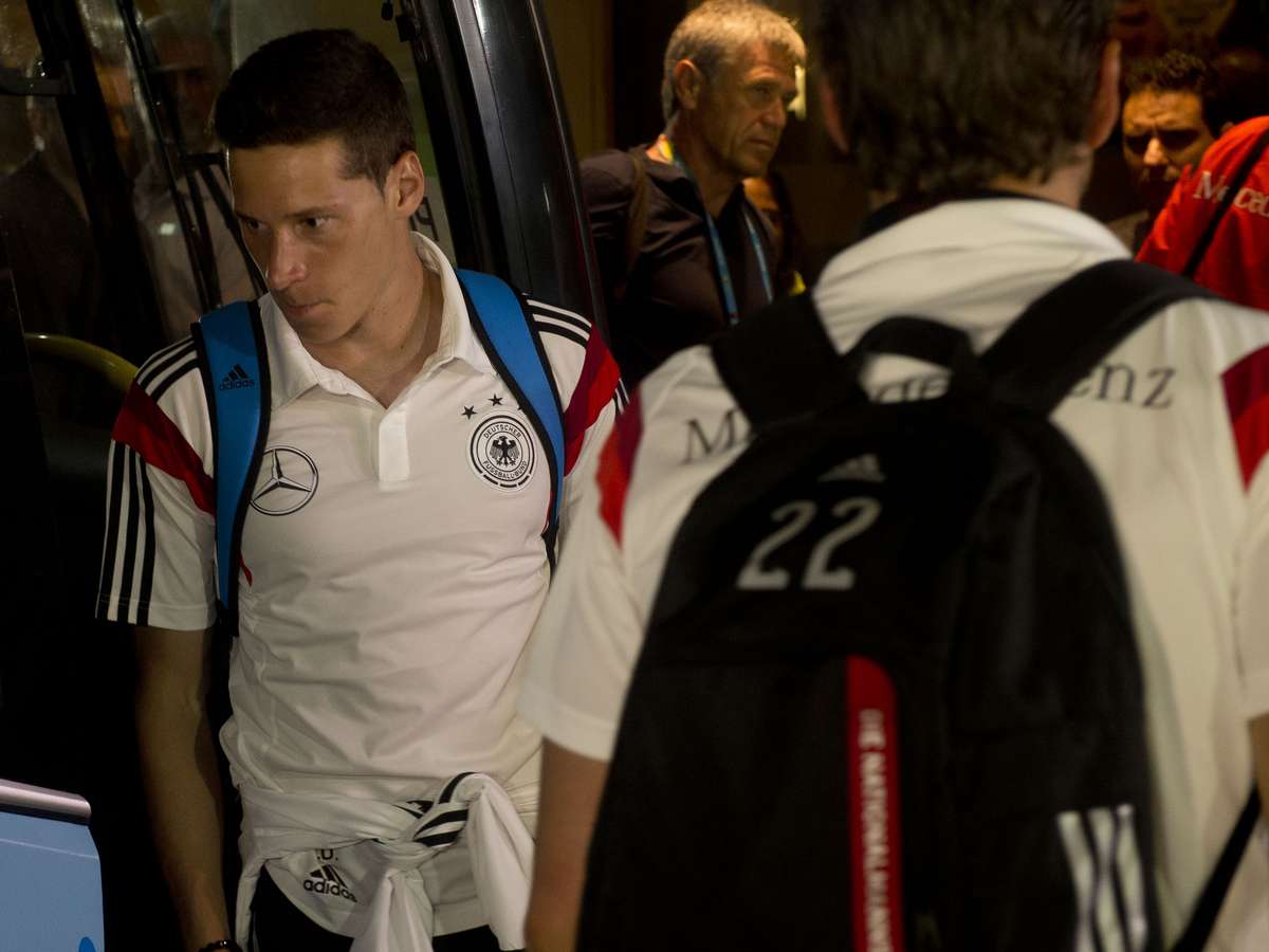Na noite desta sexta-feira, a seleção da Alemanha desembarcou no Rio de Janeiro. Com passagem discreta e pouca presença de fãs, eles chegaram ao hotel onde ficarão hospedados, no Morro do Vidigal e um dos mais caros da cidade. Os alemães disputam a grande final da Copa do Mundo no domingo, no Maracanã; na foto, o técnico do time alemão, Joachim Loew
